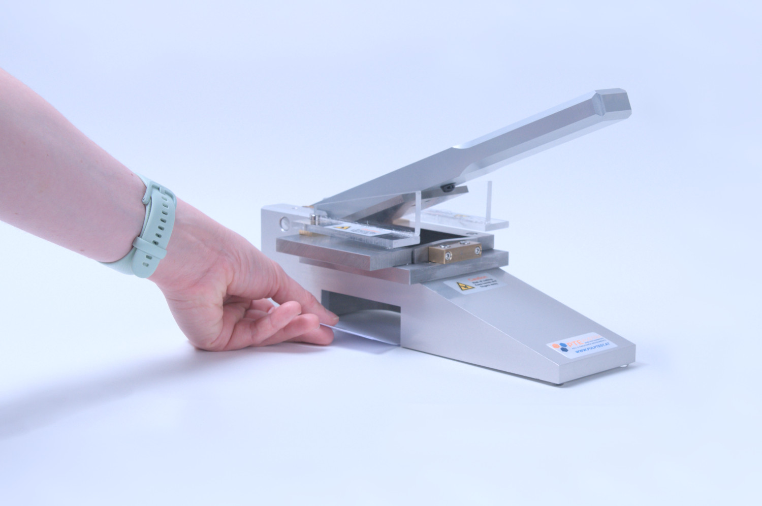 Wytrzymały, precyzyjny obcinak ręczny jest wykonany w całości z metalu. Górne i dolne ostrza wykonane są z wysokiej jakości materiału i gwarantują precyzyjne cięcie i dokładne wycinanie próbek. Urządzenie stołowe jest wyposażone w kilka urządzeń zabezpieczających, a próbkę można łatwo wyciąć, naciskając dźwignię. Poniżej obszaru cięcia znajduje się szczelina umożliwiająca szybkie i łatwe usunięcie próbki.